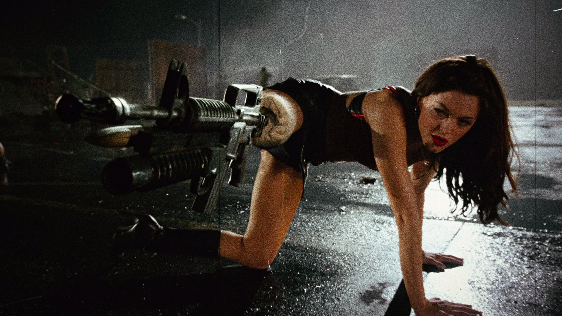 The movie starts out with a military officer (Bruce Willis) doing a deal for toxic gas with an Afghani scientist (Naveen Andrews). Once the deal goes bad the gas is leaked and spreads to the nearby Texas town, where the citizens start mutating into zombies. The rest of the movie follows the rag-tag group of townsfolk desperately trying to survive the chaos. Among the survivors are Go-Go dancer, not stripper, Cherry Darling (Rose McGowen), Dr. Dakota (Mary Shelton), a woman trying to escape her psychotic husband, and Wray (Freddy Rodriguez) a mysterious man who seems to be the world’s greatest killing machine. There are others as well, this is a Rodriguez film we’re talking about, but those three are the main protagonists.