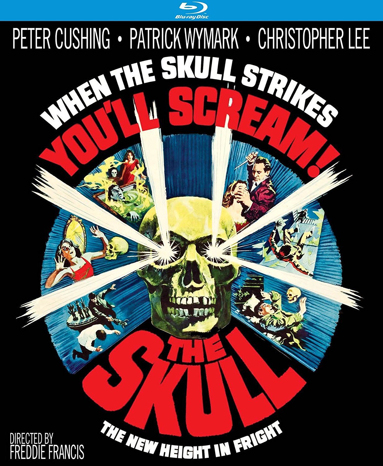 Synopsis: The Skull once again teams up horror legends Peter Cushing (Horror of Dracula) and Sir Christopher Lee (House of the Long Shadows) in a chilling, supernatural tale of murder from beyond the grave. Based on a short story by Robert Bloch (Psycho), The Skull introduces us to Dr. Christopher Maitland (Cushing), a collector of the occult. When he is given the opportunity to purchase the skull of the infamous Marquis de Sade, he leaps at the chance. What he doesn’t know is that his friend, Matthew Phillips (Lee) is the former owner of the skull – and quite happy to be rid of it. Possession of The Skull leads to a terrifying series of nightmarish events for Dr. Maitland as he tries to keep control of his life and the of unspeakable evil bearing down upon him. Hammer horror great and Oscar-winning cinematographer Freddie Francis (The Creeping Flesh, The Innocents) directed this bone-chilling thriller with a script by Milton Subotsky (Tales from the Crypt, The Vault of Horror). The stupendous cast includes Patrick Wymark (The Psychopath), Nigel Green (The Ipcress File), Patrick Magee (A Clockwork Orange) and Michael Gough (The Crimson Cult).