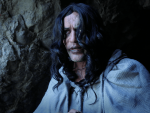 “I’m just a curious traveler,” a man of small stature and full-on shakes tells the looming monster standing just feet away. This, believe it or not, is the introduction